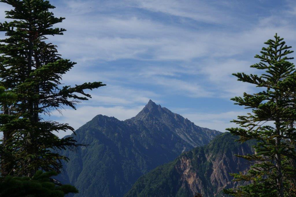 ブナ立尾根の急登を登ってくると、樹間から針ノ木岳(左)と蓮華岳(右)が見え始めた。針ノ木小屋は営業しておらず、扇沢からアクセスする針ノ木雪渓も入山禁止になっている