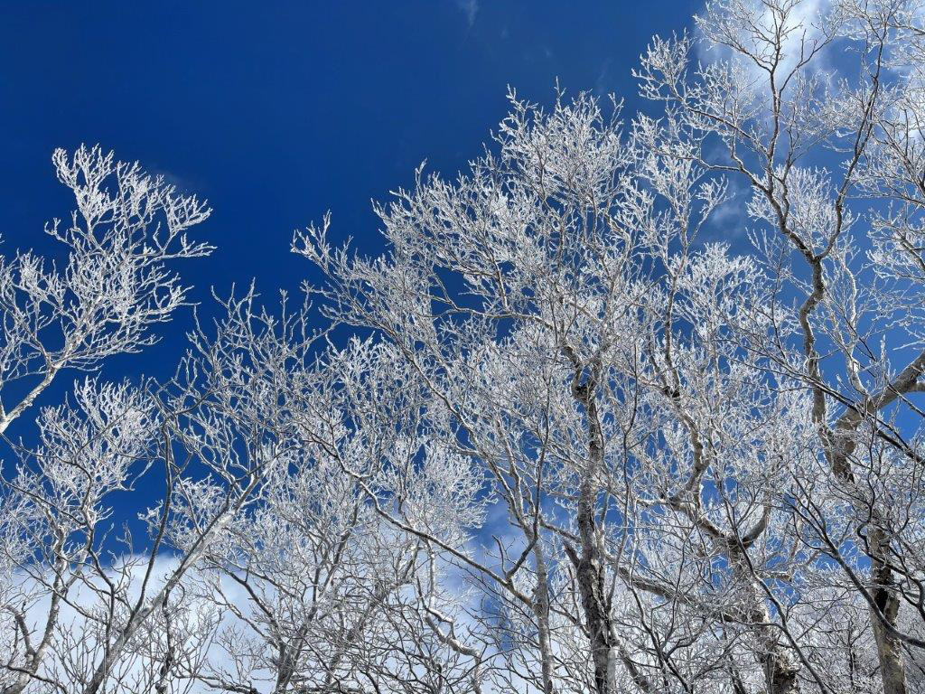 冒頭の写真。やはり空の青と霧氷の白のコントラストが一番だ