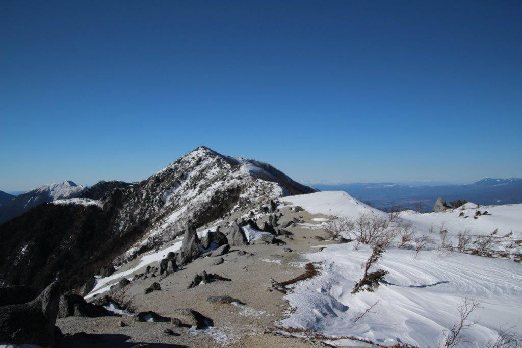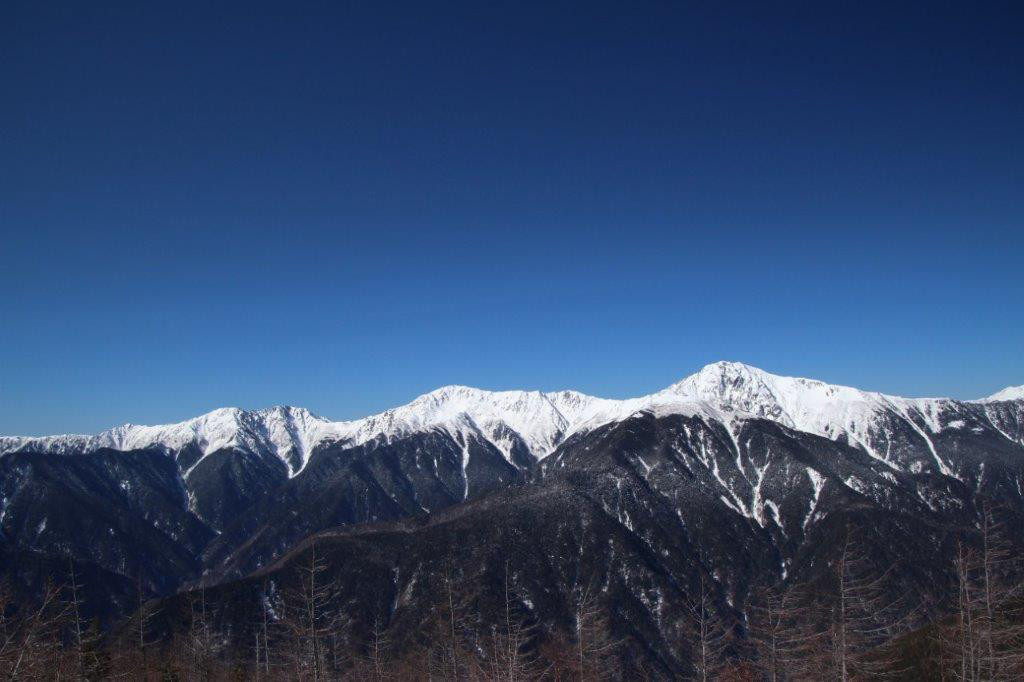 2月に出かけた金峰山からも、反対側の木曽駒ヶ岳からも眺めた山々だ。今回はもっと近くから白峰三山を愛でるという趣向。結果は御覧の通りで、大満足の成果だった