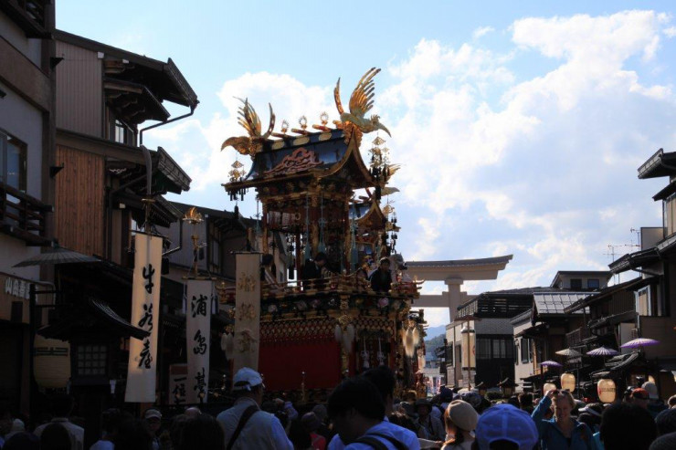 10月9日(火)、10日(水)は秋の高山祭。高山の一刀彫の飾りに漆塗りや金箔が施され、動く陽明門(日光東照宮の門)といわれる山車(だし)が有名。京都祇園祭と並び、日本三大曳山祭りの一つ。3つ目は滋賀の長浜曳山祭とか秩父夜祭とか言われているが、どちらが正しいのか知らない。