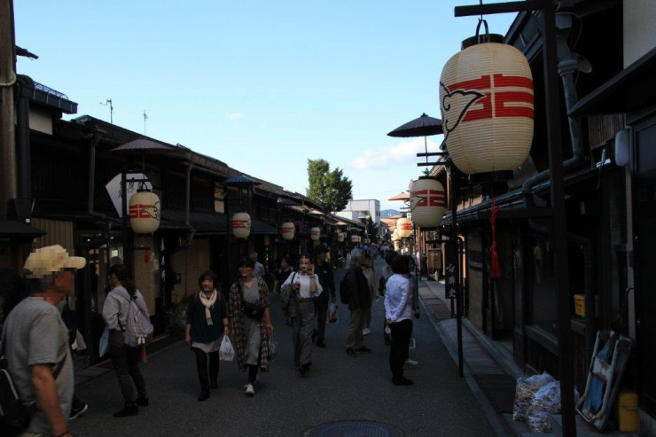 下二之町。祭りの提灯が並び、普段とは雰囲気が違う。古い街並みといえば、上三之町が特に人気で、上町に比べると下町は人通りも少ないのだが、今日は下町一帯も人が多い